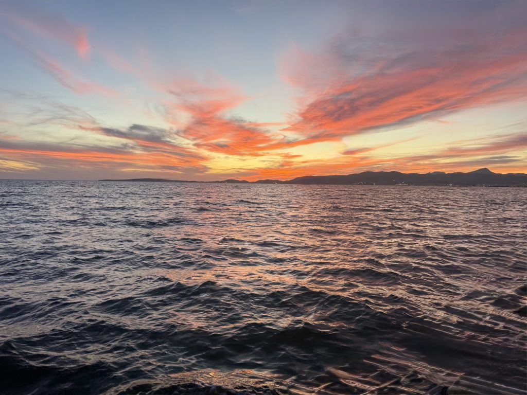Navegación al atardecer con fondeo en enclaves privilegiados para disfrutar la puesta de sol desde el mar.
